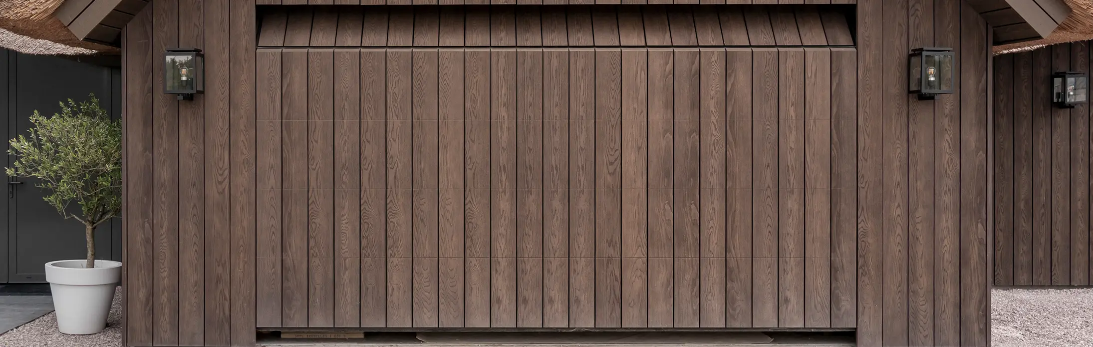 Hout heeft karakter. Het voegt warmte en verfijning toe aan iedere gevel. Maar niet iedereen wil periodiek schilderen, behandelen of vergrijzing accepteren. Voor die mensen bieden wij garagedeuren aan in houtlook: materialen die eruitzien als écht hout, er jarenlang mooi blijven met minimaal onderhoud.