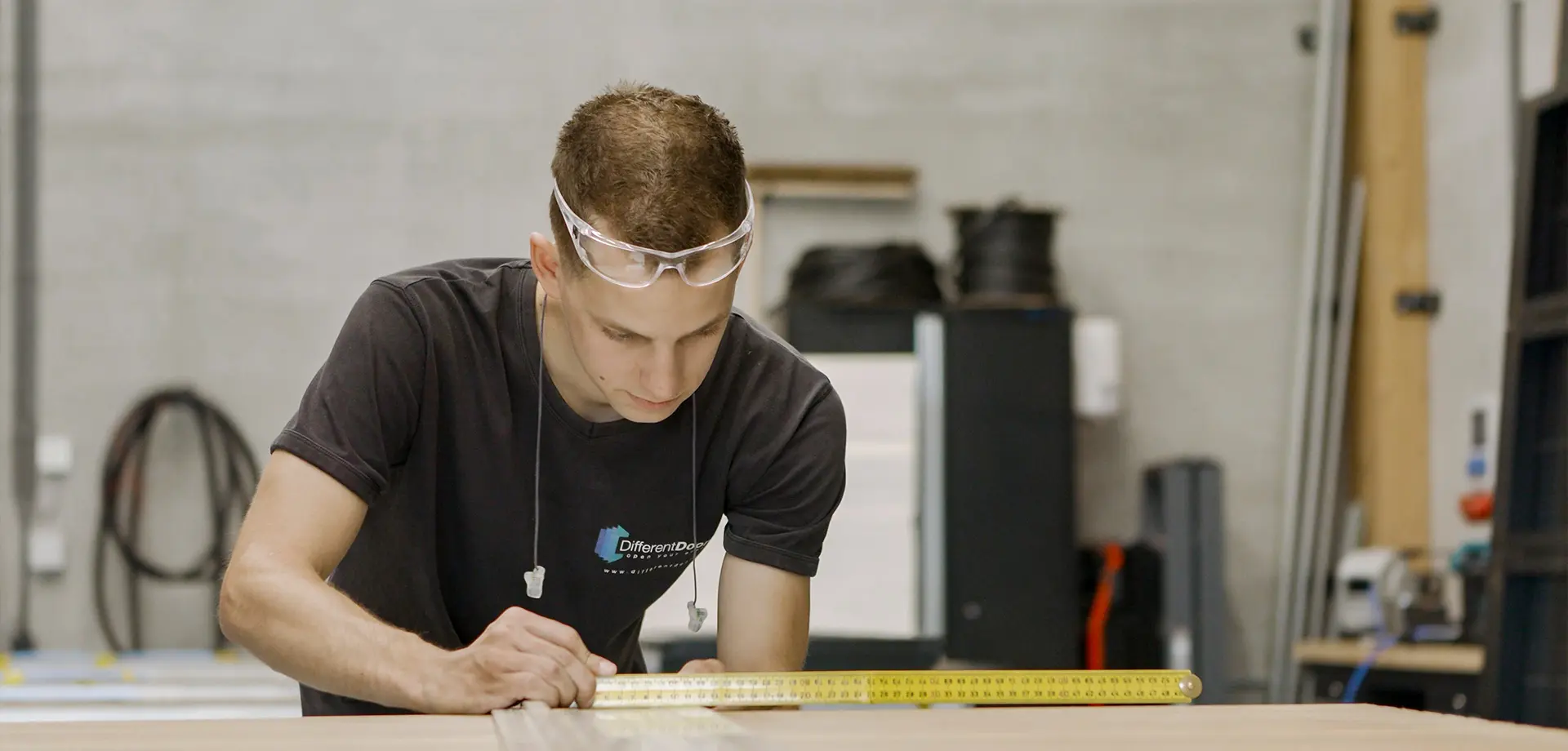 Bij Different Doors houden we alles in eigen hand – van ontwerp tot productie. Dat geeft ons de vrijheid om ambacht en innovatie samen te brengen in elke deur die we maken. Jouw wensen vormen het vertrekpunt. Of je nu een subtiele eyecatcher zoekt of een entree die alles overstijgt: wij maken ’m. Precies zoals jij ‘m voor ogen hebt.