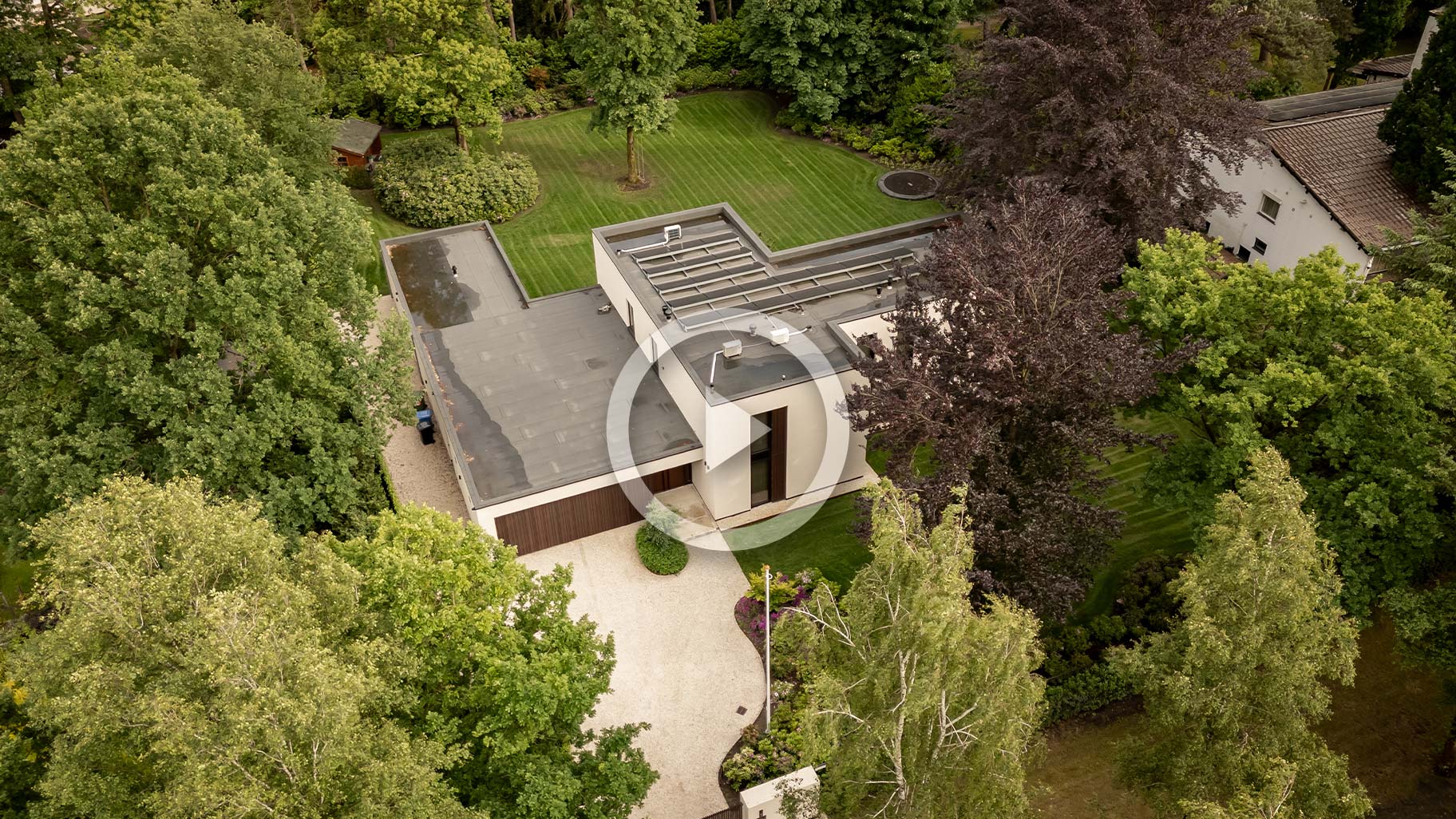 Verscholen in het groen ligt deze moderne nieuwbouwvilla, voorzien van een houten sectionaaldeur die volledig opgaat in de gevel. Met een breedte van ruim vijf meter kan je er niet omheen zodra je de woning nadert…